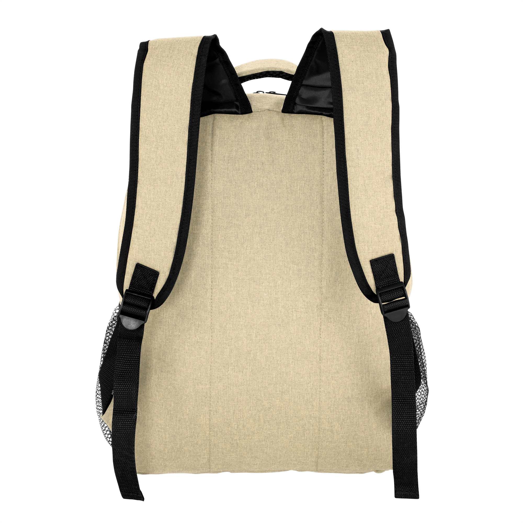 Mochila portanotebook de hasta 16 pulgadas. Compartimento principal con cierre bidireccional. Interior con bolsillo acolchado portanotebook y cierre con velcro. Amplio bolsillo frontal horizontal con cierre. Dos bolsillos laterales de red elastizados porta botellas y accesorios. Asa superior, correas y espalda acolchados. Correas ajustables. Tiradores de cierres metálicos color negro.
