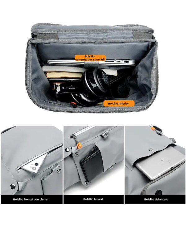 tapa superior con cierre de botones (permite un cerrado más seguro para tus pertenencias).